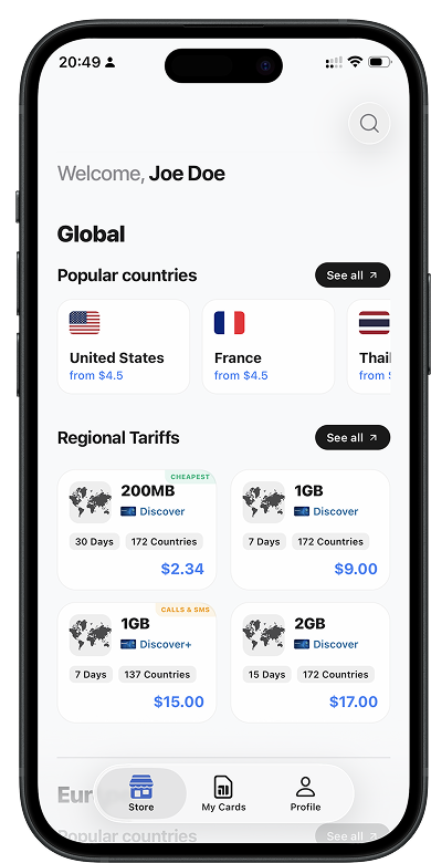 Instant eSIM activation for 200+ countries. No SIM cards, no roaming fees, no hassle.